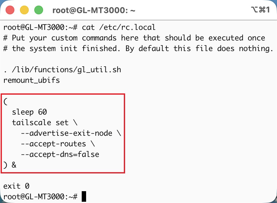 Without this, the router won’t advertise itself as an exit node after reboot.